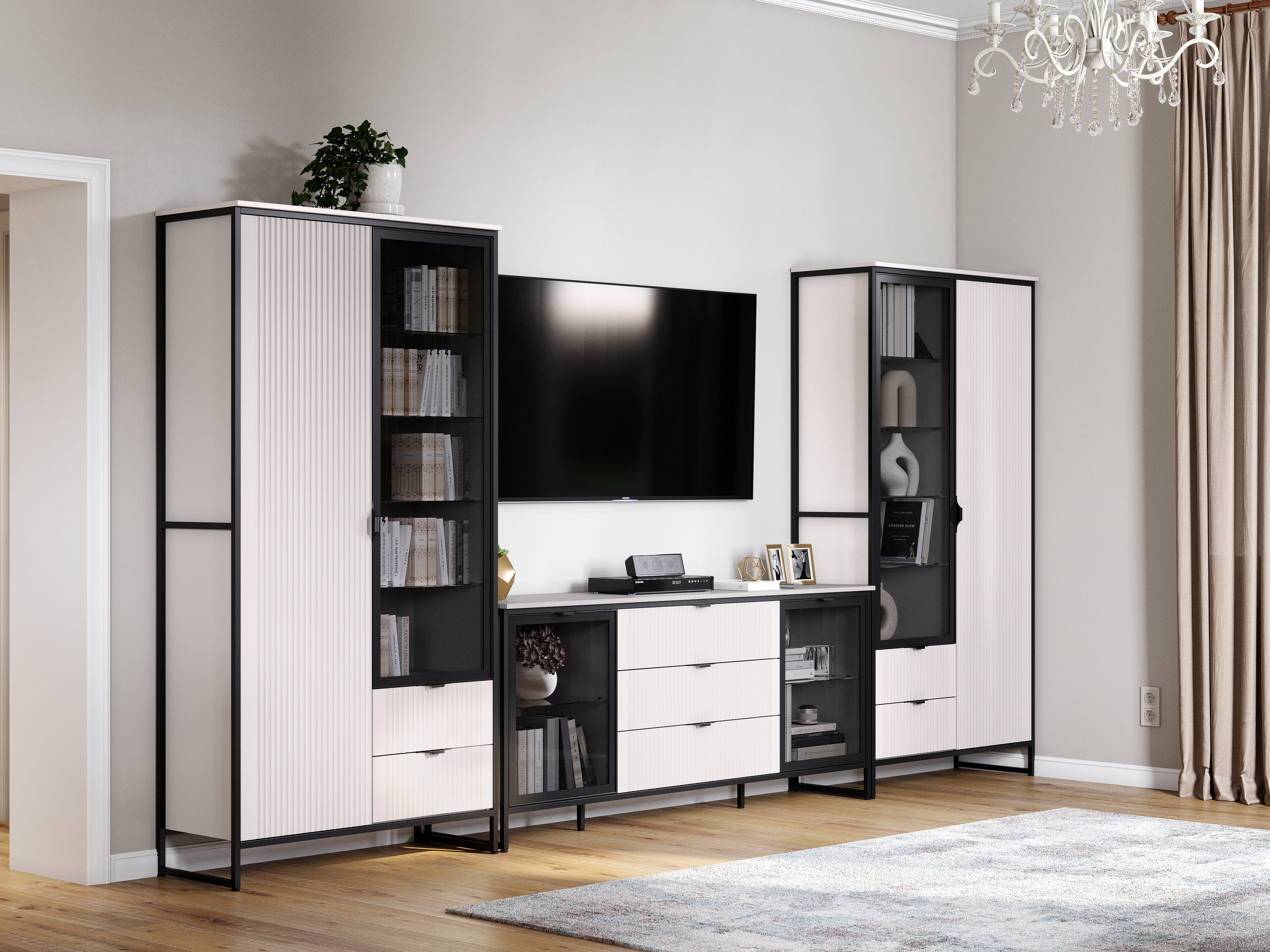 Тумба 2 дв 3 ящ "Нора" гостиная со стеклянными дверями Персидский жемчуг