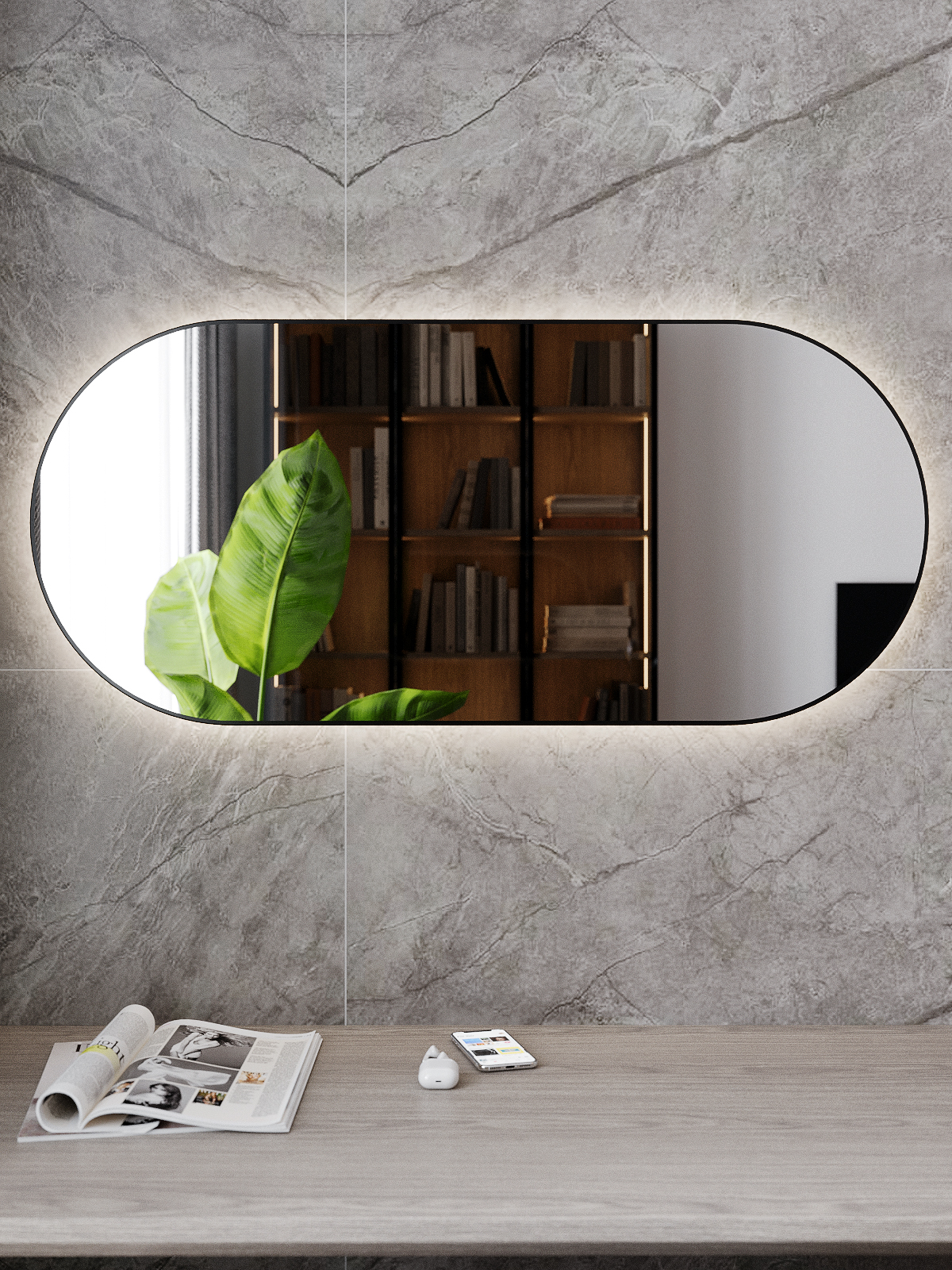 Зеркало навесное Z-16 110х50 см с черной рамкой и подсветкой